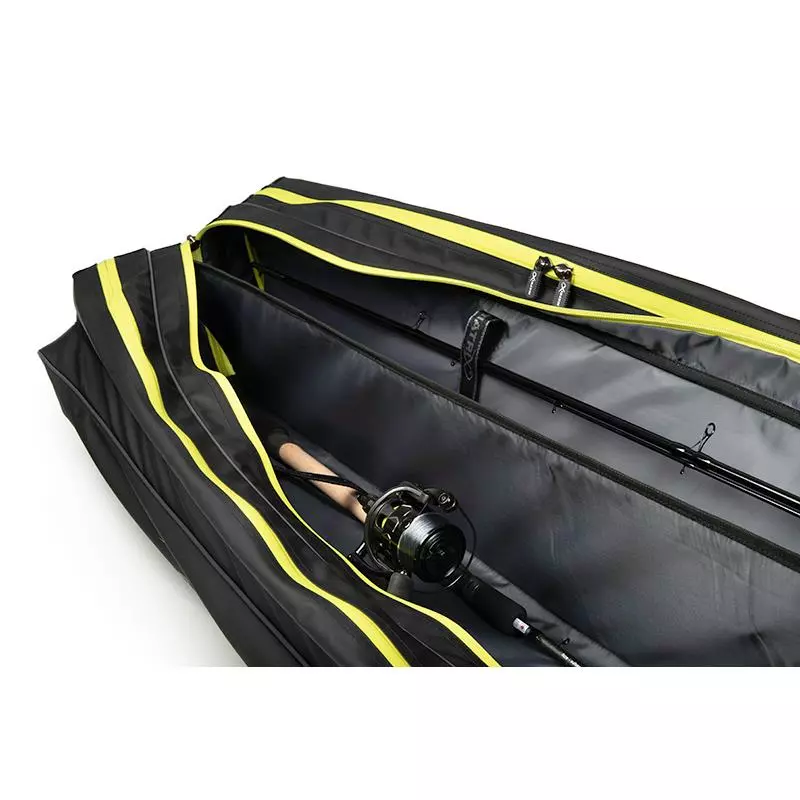 • Chacun des compartiments permet de transporter deux cannes montées (6 cannes au total)